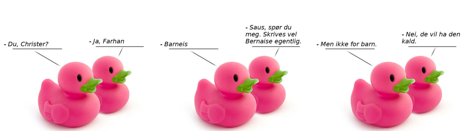 – Barneis– Saus, spør du meg. Skrives vel Bernaise egentlig.